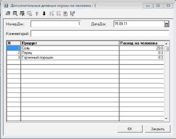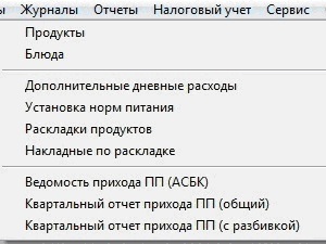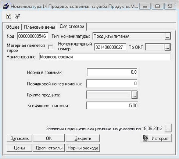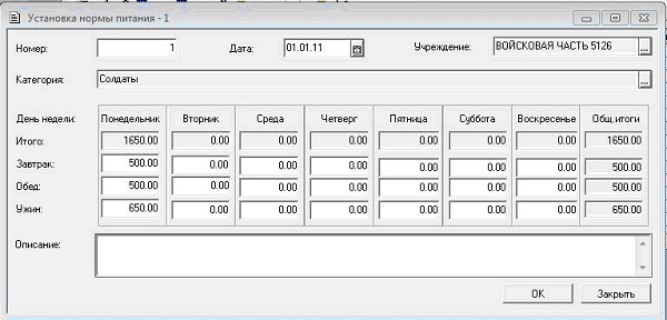1С 7.7 -> Дополнительный модуль ПИТАНИЕ (продовольственное обеспечение).