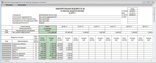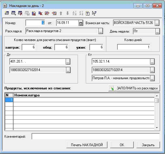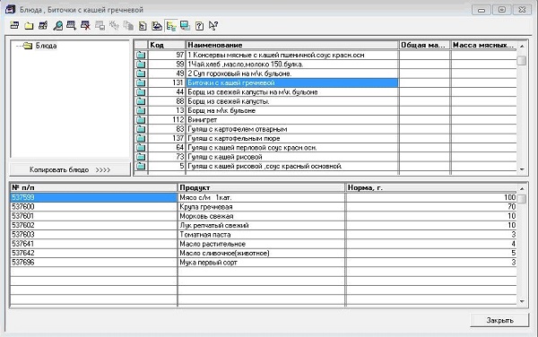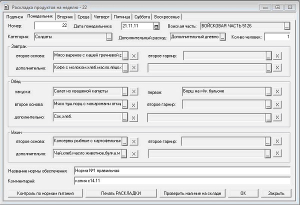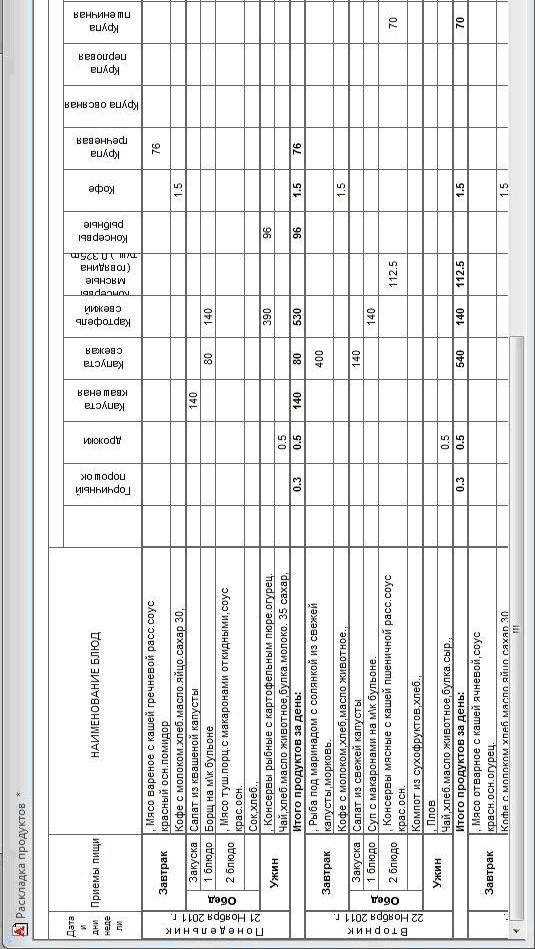 К СПИСКУ РАЗДЕЛОВЭтот модуль предназначен для автоматизации продовольственного обеспечения. Т.е. учета поступления продуктов питания, формирования блюд и меню раскладки, планирования потребности продуктов, автоматического по дневного (или недельного) списания продуктов на основании меню раскладки, а так же формирования всех необходимых форм по учету питания.