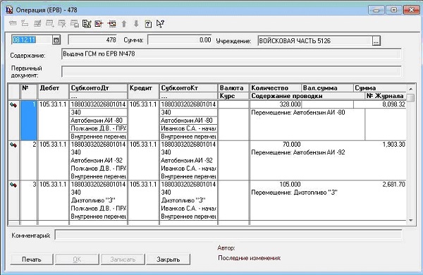 1С 7.7 -> Дополнительный модуль ГСМ.