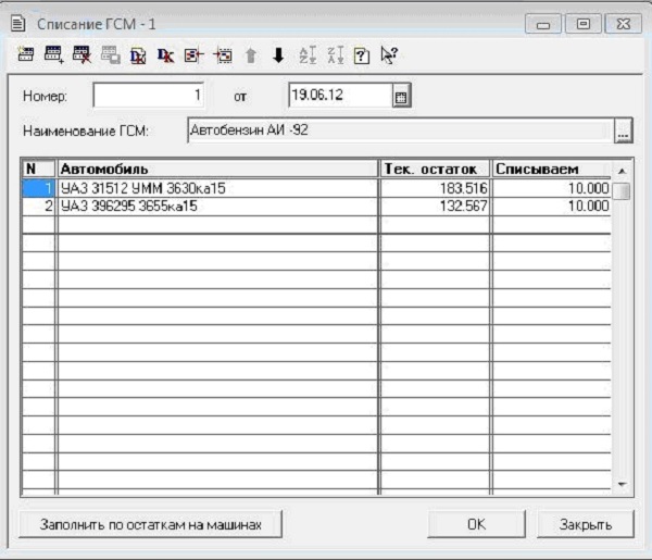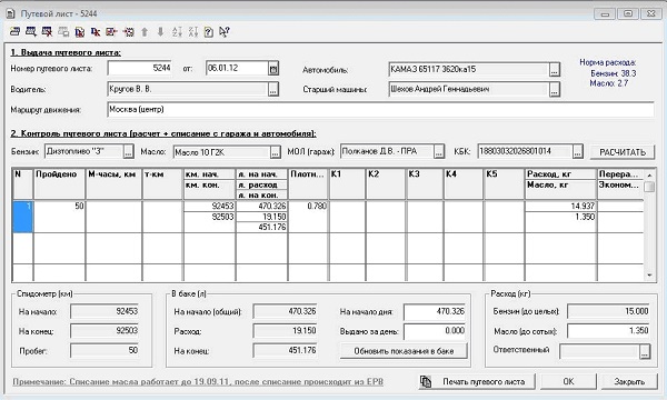 К СПИСКУ РАЗДЕЛОВДанный модуль предназначен для учета ГСМ в литрах в разрезе машин, автоматического контроля путевых листов и автоматического списания ГСМ с бухучета в кг.