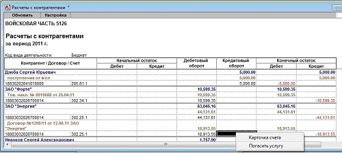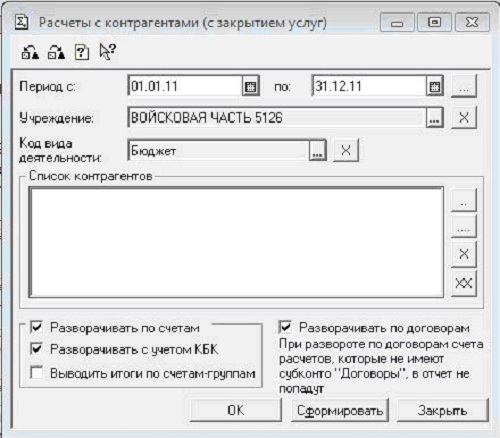 Дополнительный отчет "Расчеты с контрагентами (с закрытием услуг)".