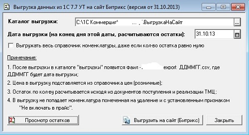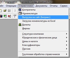 Дополнительная обработка для 1С 7.7:ТиС "Выгрузка на сайт Битрикс".
