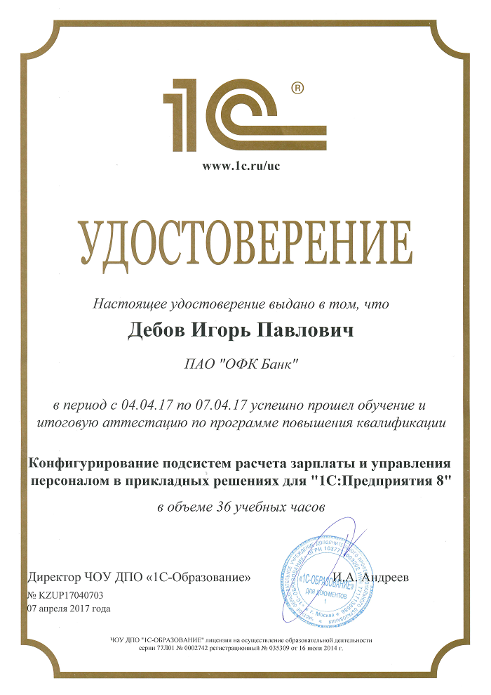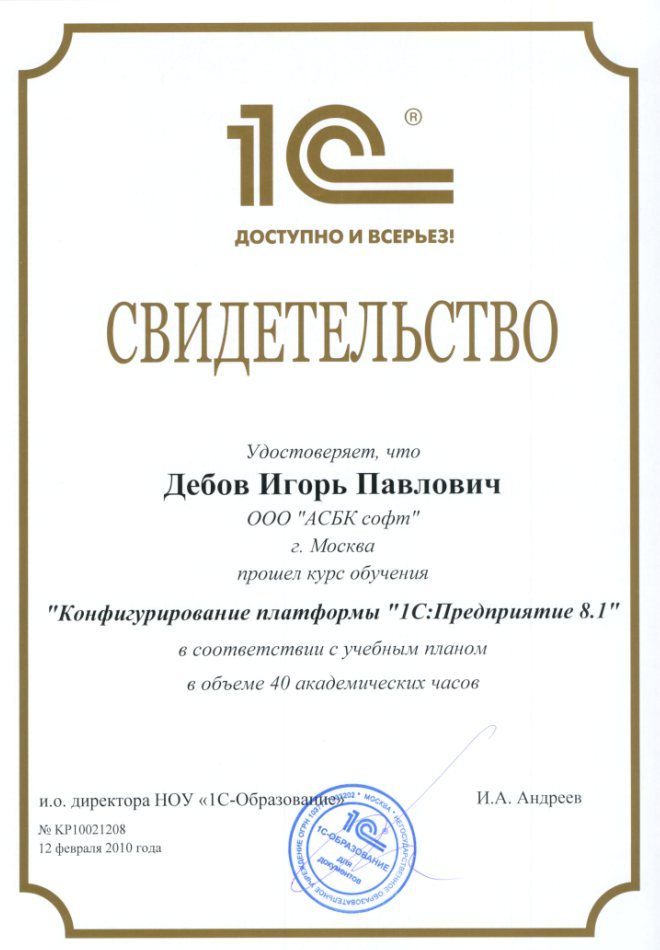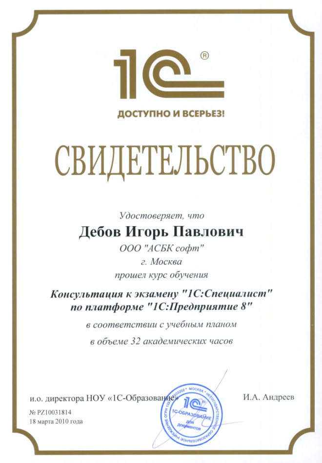 СЕРТИФИКАТЫ 1C