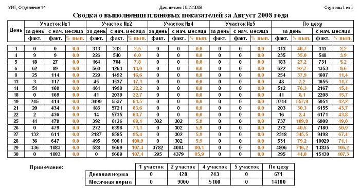 К СПИСКУ РАЗДЕЛОВДанная система предназначена для анализа и диспетчеризации работы инструментального производства, т.е. программа позволяет отследить выполнение заказа по участкам в рамках каждого отделения\цеха и в общем по производству. Также возможна печать различных отчётов для экономистов и диспетчеров (сводка выполнения плановых показателей, отчёт о выполнении плана по товарной продукции, отчёты по номенклатуре и т.д.).