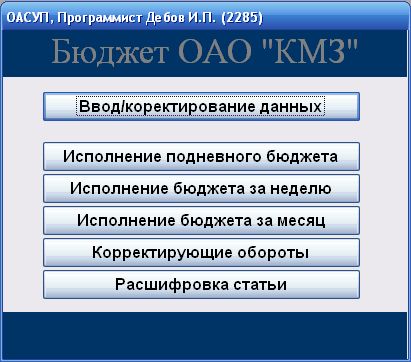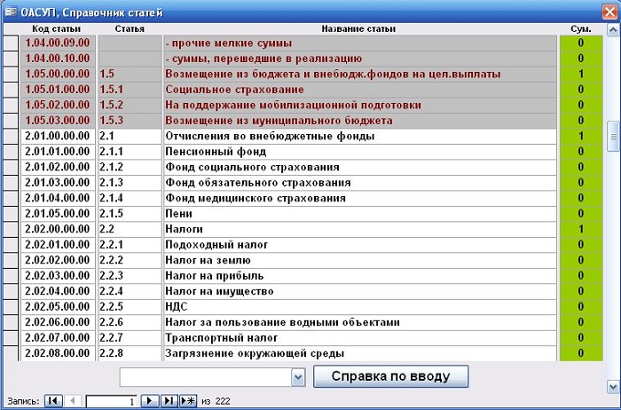 К СПИСКУ РАЗДЕЛОВЭта программа предназначена для отслеживания выполнения бюджета. В этой программе заносится вся необходимая информация и затем анализируется. В справочнике статей определяется входимость статей и соответственно некоторые статьи будут считаться автоматически. Отслеживание бюджета возможно по дням, а на главной форме ввода информации можно оперативно получить информацию по каждой статье. Все формы, выдаваемые на печать, имеют общепринятый вид на многих организациях.